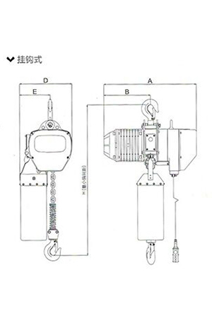 | 掛鉤式環(huán)鏈電動葫蘆(0.25T-5T) 尺寸參考: | |||||